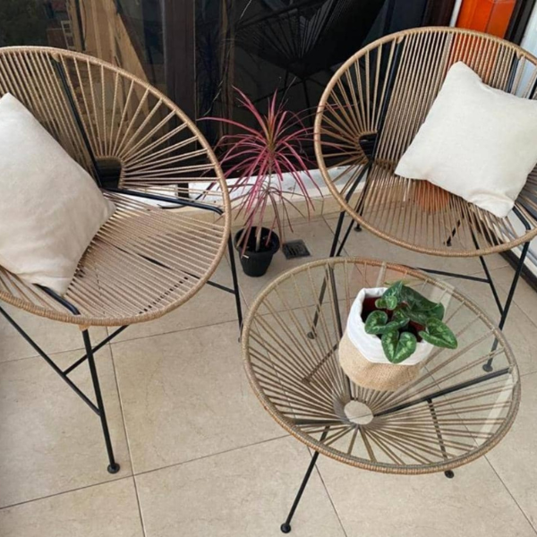 con hamacas y nuestras mesas tejidas o de chapa combinan muy bien.